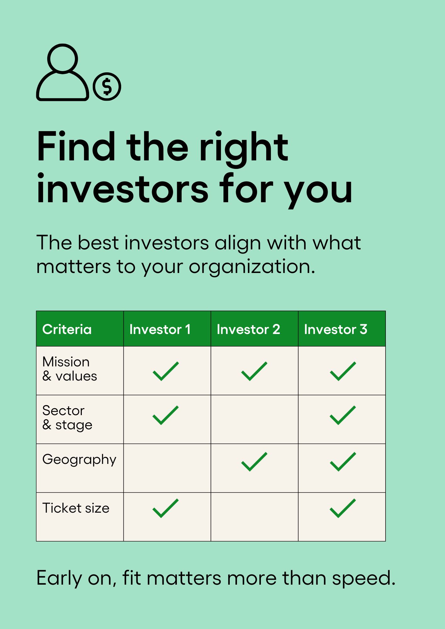 Find investors aligned with your vision and goals while learning best practices to approach, attract, and engage them